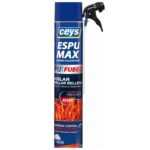 Espumax PU Fuego es ideal para sellado de pasos cortafuegos, salidas de emergencia, vías de evacuación y relleno de muros colindantes entre edificios. Para una correcta aplicación, se recomienda limpiar y humedecer previamente la superficie, aplicar entre +5 °C y +30 °C y rellenar únicamente el 50 % del hueco, ya que el producto expande entre 1,5 y 2 veces su volumen.